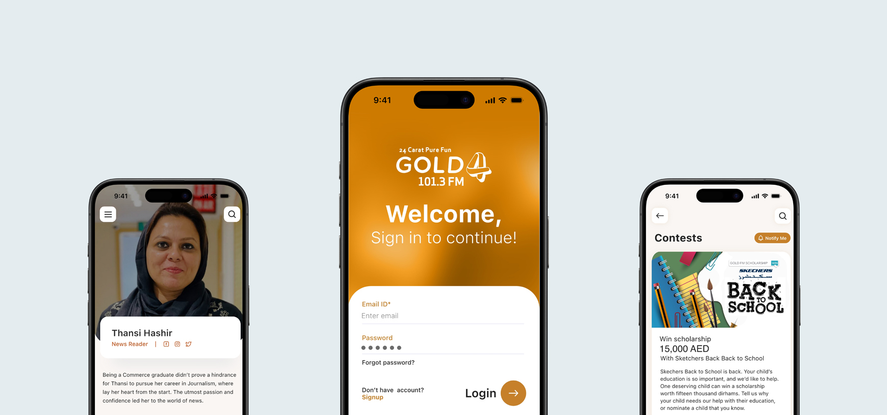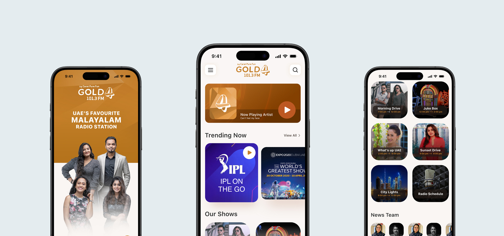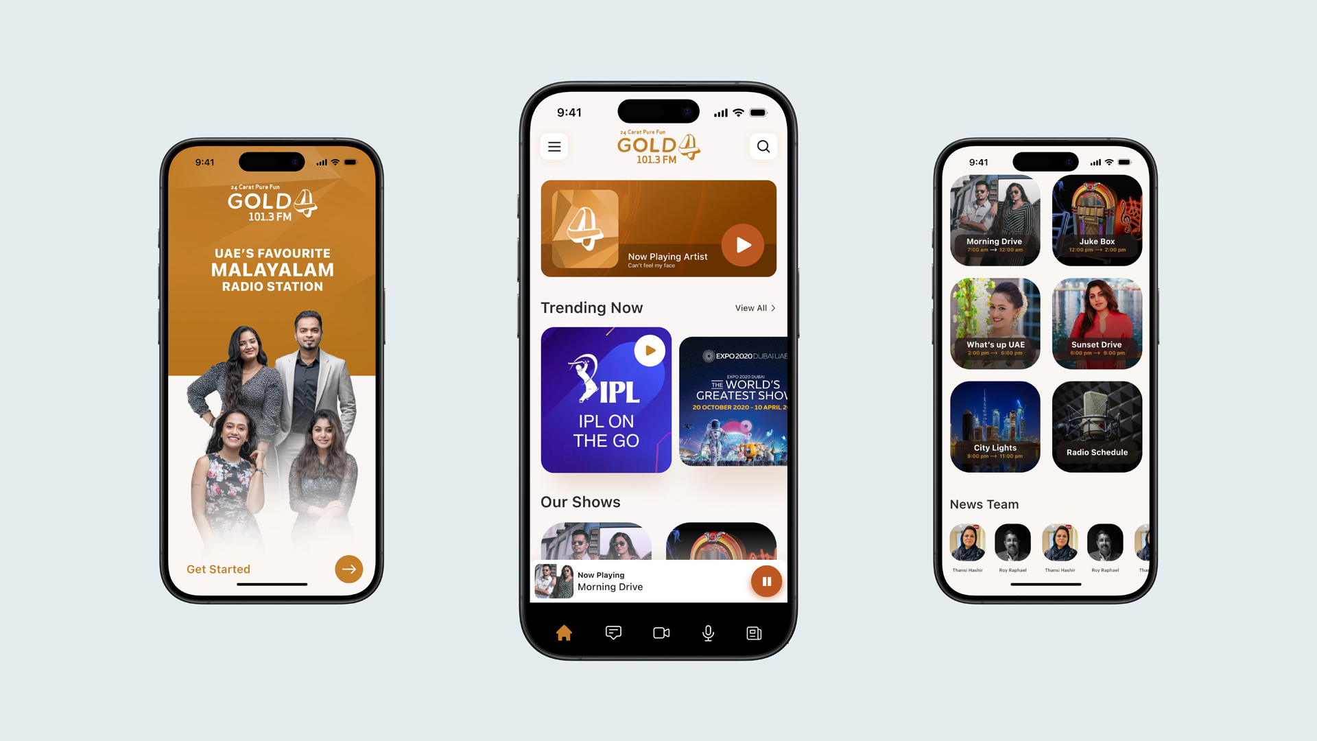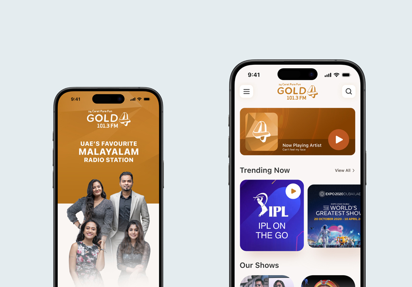 Gold 101.3 FM is a radio streaming app that gives users seamless access to live radio, shows, and curated music playlists. The redesign aimed to create a modern, intuitive, and engaging interface that enhances the overall user experience while encouraging frequent and enjoyable app usage.