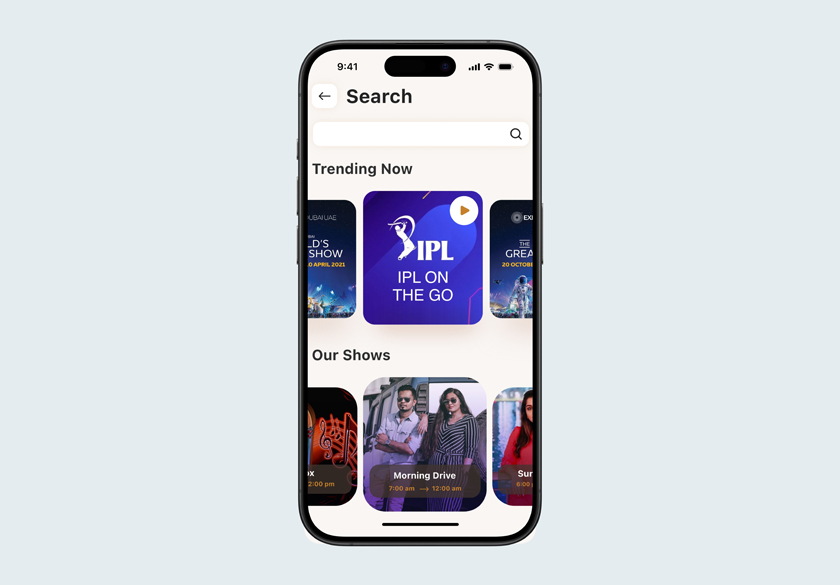 The redesigned app improves user engagement and satisfaction by making content discovery and playback more intuitive. Users can now quickly access live shows, playlists, and schedules, enhancing retention. The modernized UI strengthens the brand’s digital presence and communicates professionalism. Mobile responsiveness and interactive features ensure a smooth, enjoyable experience, encouraging regular usage and increased time spent within the app.
